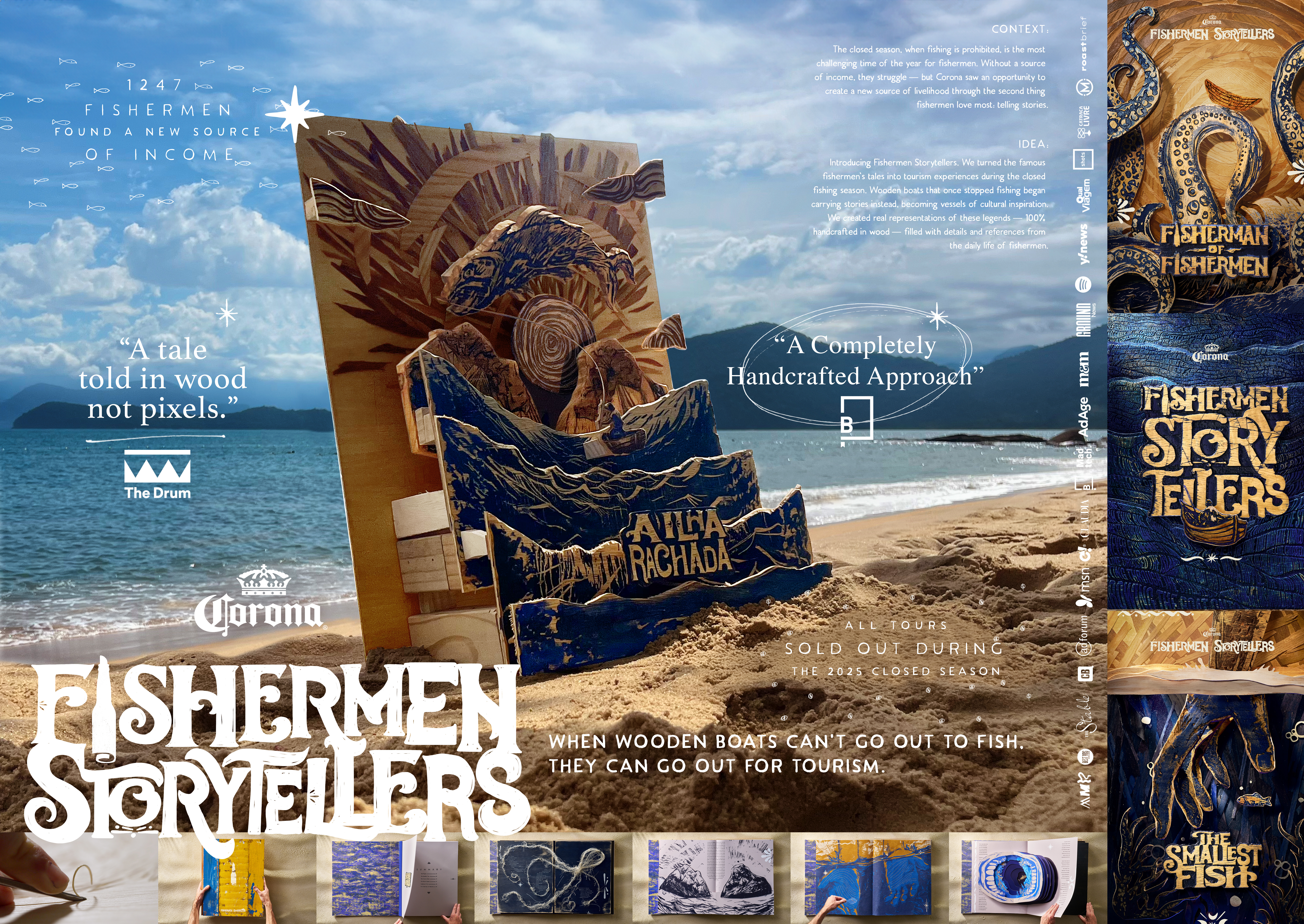 Corona has been the brand of the beach, the sun, and the sea for decades. It cares about the ocean—and about those who depend on it. That’s why the Fishermen Storytellers project could only come from a brand with this kind of vision. Every year, during the closed fishing season—when the capture of certain species is banned to allow for reproduction—local fishermen are left without their only source of income. For many, the only alternative becomes illegal fishing. Faced with this harsh reality on the beaches of Brazil—and in many places around the world—Corona created a new source of income by tapping into the second thing fishermen love most: telling stories. Corona turned their legendary tales into tourism experiences. Fishermen became guides. Their stories became attractions. And the tours became a new form of income. In this way, the brand that cares for the oceans—and for those who depend on them—helped marine species reproduce in safety, while also providing an alternative livelihood for the fishermen.