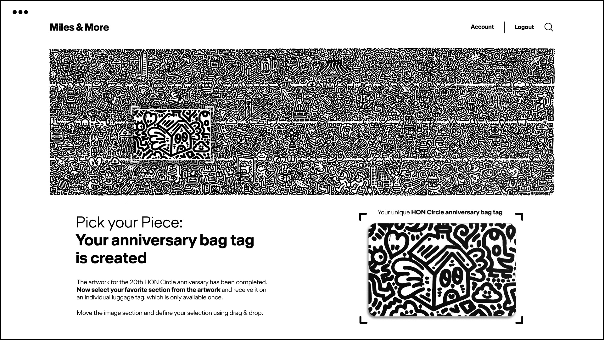 The "HON Circle x Mr. Doodle" campaign focused on personalized artistic exclusivity. The key was transforming a simple travel item—a bag tag—into a limited-edition collector’s piece with deep personal and emotional significance. Inspired by input from HON Circle members, world-famous artist Mr. Doodle created an exclusive large-scale mural at Munich Airport. The mural served not only as on-site artwork reflecting HON Circle members’ experiences and stories but also as the foundation for the personalized bag tags. By allowing HON Circle members to co-create and select their unique fragment of Mr. Doodle's mural, we elevated the bag tag into a shared experience and reinforced their emotional connection to the HON Circle community. The multi-channel approach combined direct digital engagement (personalized emails, website), physical presence (mural), and an exclusive bag tag mailing. The result: this idea deeply resonated with the target audience, reinforcing their status and forging a memorable brand connection.