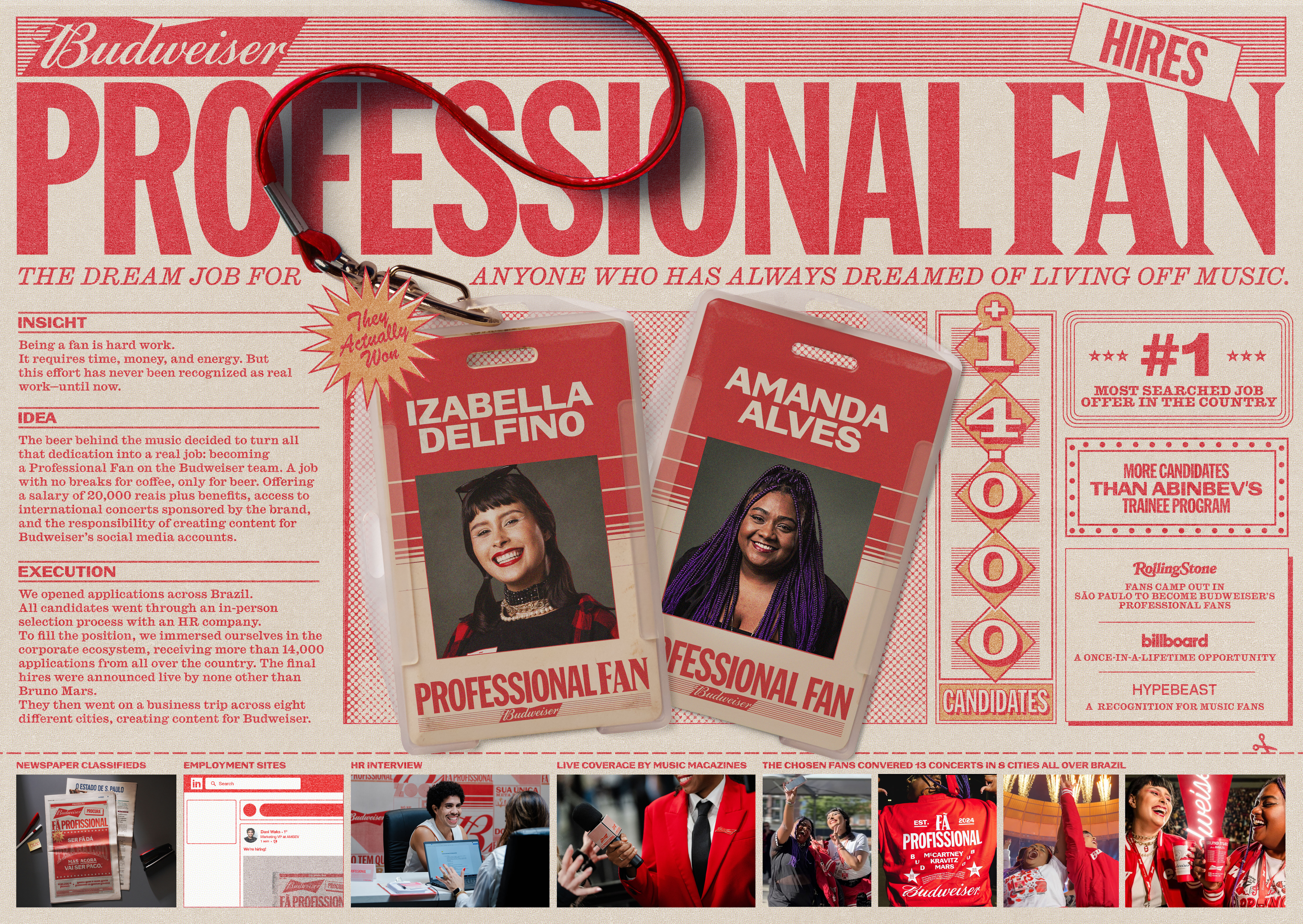 The core idea behind Professional Fan was to turn music fandom into a legitimate career. Recognizing the dedication of fans, Budweiser created an official position where they could contribute to the brand’s social media content and experience international concerts. This paid role — offering a salary of 20,000 reais plus benefits — aimed to elevate the fan experience from a hobby to a serious, recognized profession.